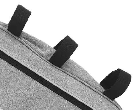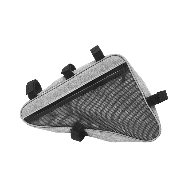 กระเป๋าทรงสามเหลี่ยมท่อบนจักรยานเสือภูเขา BI-03 สีเทา มีช่องกระเป๋าหลายช่องพร้อมช่องที่ออกแบบมาอย่างดีเพื่อความสะดวกในการจัดเก็บสิ่งของต่างๆ เช่น โทรศัพท์ กระเป๋าสตางค์ กุญแจ และขวดน้ำ ขนาด 34 x 6.5 x 26 ซม. และความจุ 5.75 ลิตร มาพร้อมกับแถบสะท้อนแสงเพื่อความปลอดภัยที่เพิ่มขึ้นระหว่างการขับขี่ในเวลากลางคืน และสามารถปรับแต่งด้วยโลโก้ได้ ซิปด้านข้างแบบกันน้ำช่วยให้พกพาสะดวก